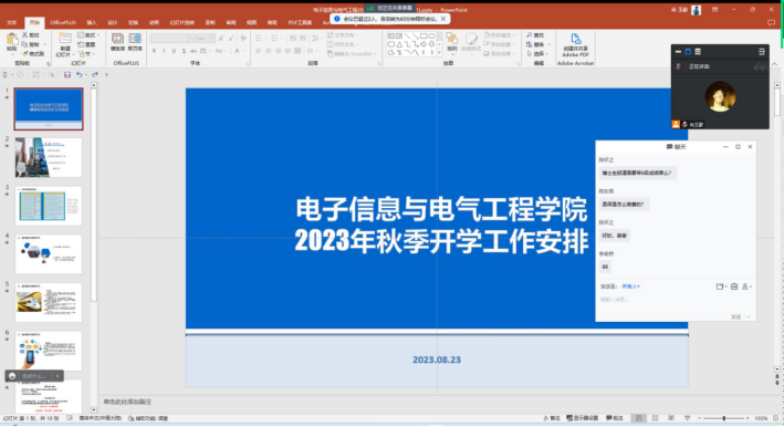 2023年8月23日15时,91免费国产召开了2023年秋季研究生开学主题班会,通过线上会议的方式,分别在研究生新生班级和老生班级召开。两场会议由学院研究生会主席尚玉豪同学主持,康玮辅导员主讲,对秋季开学的工作安排和返校注意事项进行详细说明,为顺利开展返校工作做好充分准备。