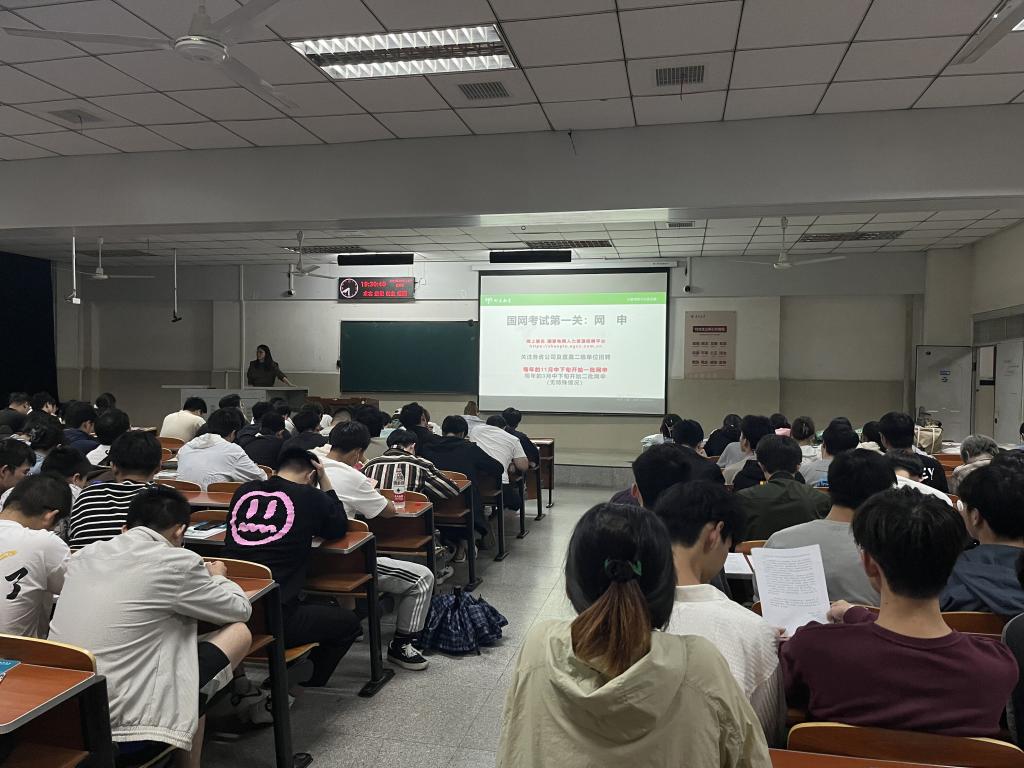 余老师分析了当前的就业形势和电气类专业学生的就业去向,从为什么要报考国网、国网的招录流程、考试细节、笔试分数线、近几年湖北省及长江大学录取情况等方面进行了详细的分析和深入的讲解。