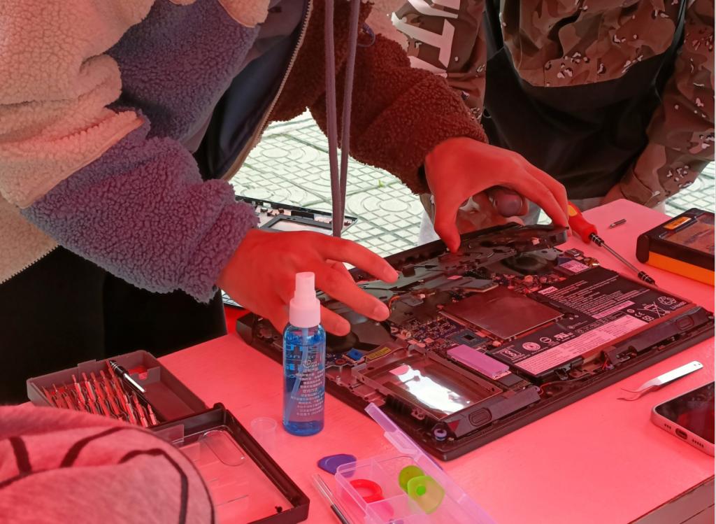 学院安排专业水平过硬的学生组成维修队伍面向全校学生提供常用小电器维修、电脑清灰等服务,同时线下宣传日常安全用电常识,帮助提高宿舍安全用电意识。