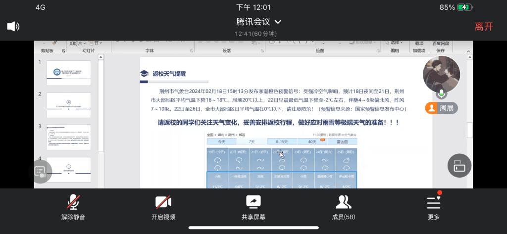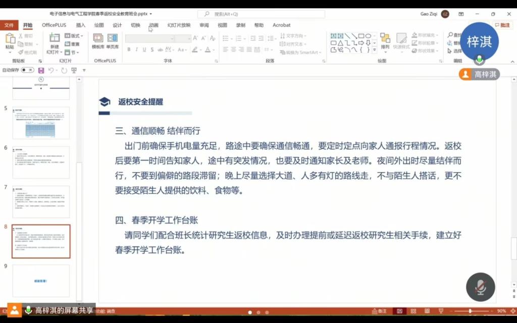 为做好2024年春季开学工作,确保学生安全、有序返校,91免费国产于2月20日组织全体研究生召开了春季安全返校教育主题班会。 会上,辅导员康玮传达了学校有关春季开学学生返校工作会议精神,对提前返校、延迟返校学生申请审批手续办理、学生返校行程安排报告等事项提了要求,重点提醒学生关注天气变化,妥善安排返校行程,做好应对雨雪等极端天气的准备,并开展了返校交通安全专题教育。 通过此次主题班会,明确了同学们对当前返校手续的要求,提升了同学们返校途中的安全意识。 (审核 张晨露 编辑 颜国琼)