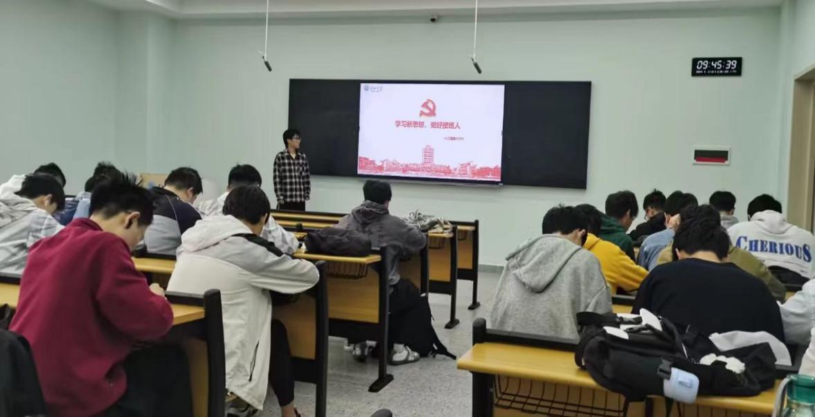 人工智能12201团支部于4月2日下午在16教B106开展三月班团会。团支书南林江带领同学们学习以“学习新思想,做好接班人”为主题的团课,深入学习党的二十大关于全面建成社会主义现代化强国、以中国式现代化全面推进中华民族伟大复兴的战略部署,学习了解新时代新征程党和国家事业发展的目标任务,引导青年学生积极成为环境保护的志愿者、实践者和环保行动的宣传者和推动者。最后鼓励班级的每一位同学围绕学习主题,结合实际开展力所能及的志愿活动。