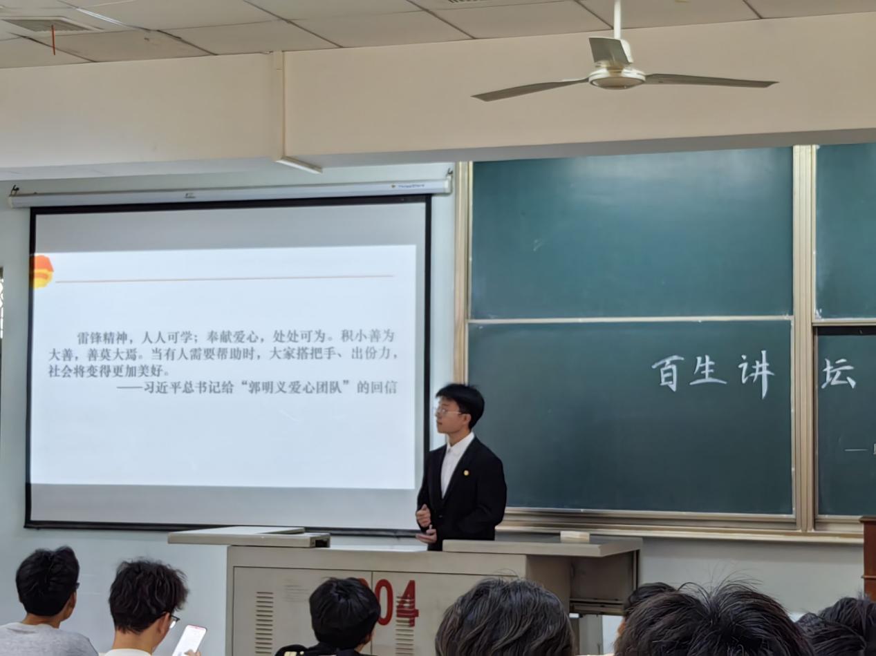 (通讯员 叶顺)为深入学习贯彻习近平总书记关于青年工作的重要思想和关于教育工作的重要论述,坚持用习近平新时代中国特色社会主义思想武装头脑、铸魂育人,我院积极落实校团委决定,于4月18日在13教A204组织开展百生讲坛活动。