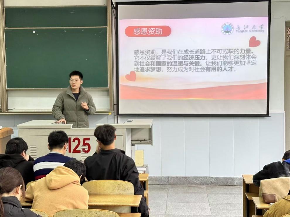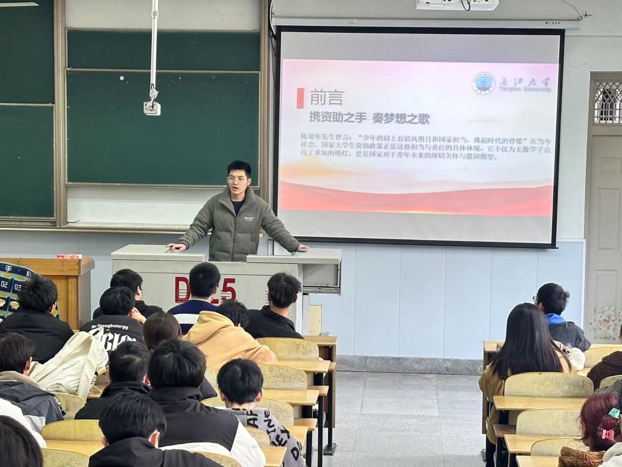随后,万谦老师介绍国家奖助学金政策,详细说明了国家奖学金、励志奖学金、助学金的设立目的、资助对象、金额标准与申请条件,强调这彰显了党和国家对教育事业对青年学生的关怀;他还介绍了学校奖助学金体系,涵盖学校奖学金、单项奖学金、助学金,着重讲解各类奖项的等级、评选标准与发放流程。