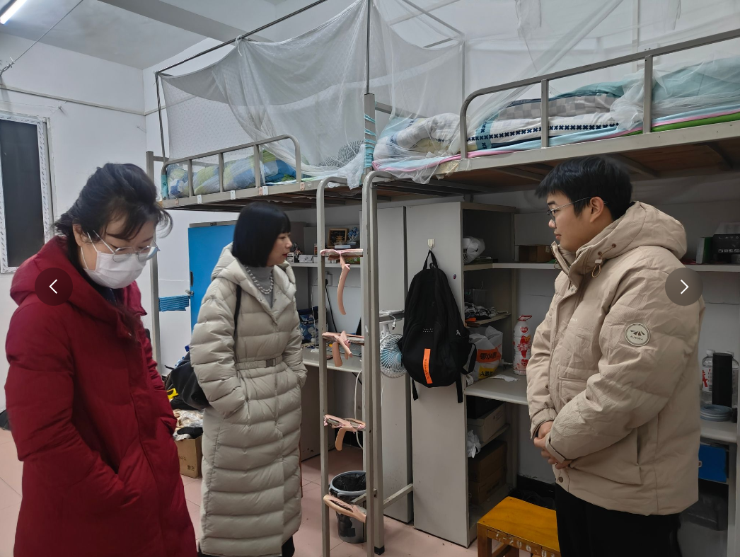 为进一步强化学生宿舍安全管理,营造安全、卫生、和谐的居住环境,12月19日晚,学院党委副书记张晨露带领全体辅导员、班主任在东、西校区全面开展宿舍安全卫生隐患排查工作。