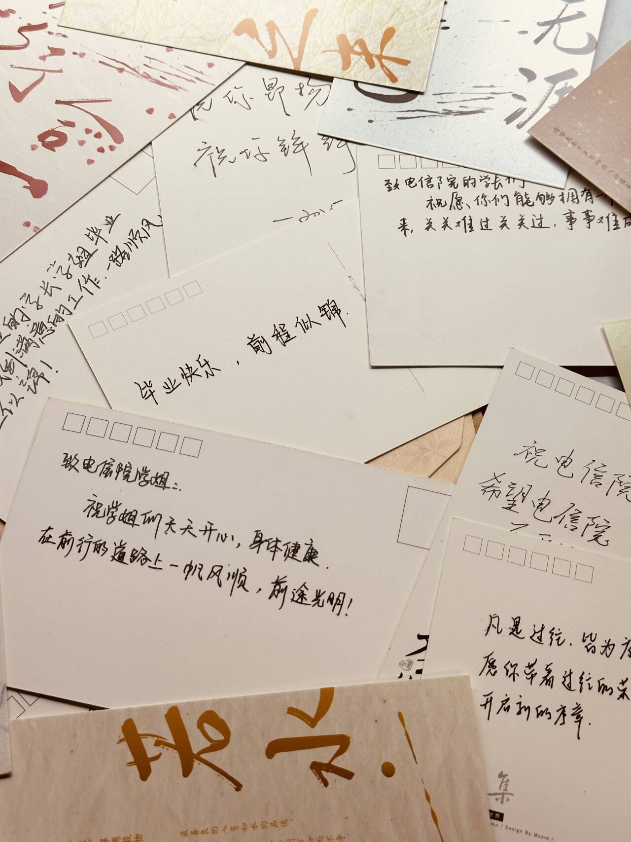 为深化“谈心育人”工作内涵,营造温馨和谐的毕业氛围,5月17日至30日,学院举办“纸短情长 拾忆青春”2025届毕业生书信传情心语活动。活动以书信为载体,通过师生、同窗间的双向寄语,传递感恩与祝福,共收到信件40余封、祝福明信片20多张,纸笺载深情,笔墨凝厚谊,为毕业生留下一份独特的青春记忆。