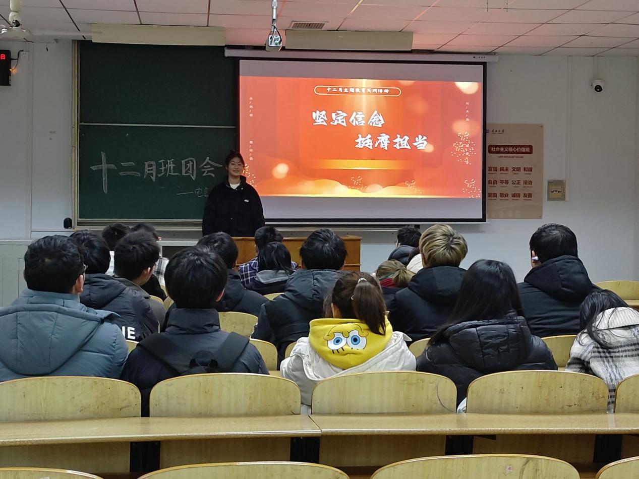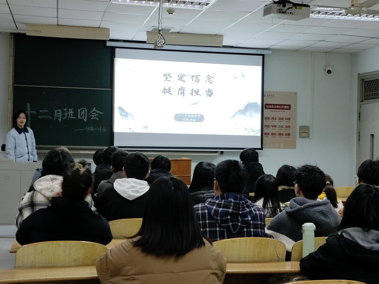 12月20日晚七点,仪器12201团支部在东13教D524开展十二月班团会。在班团会上,主持人刘雅欣同学带领同学们学习“挺膺担当”专题,深入学习习近平总书记关于青年工作的重要思想,重点学习习近平总书记对青年一代的殷切希望和重要要求,激发强国有我的青春激情,争做有理想、敢担当、能吃苦、肯奋斗的新时代好青年,在中国式现代化建设中挺膺担当。刘雅欣同学带领班上同学深入开展就业引航主题团日活动,许多同学对自己未来的职业规划畅所欲言,大家对将来就业岗位产生激烈讨论,这不仅帮助学生们强化了就业意识,也初步明确了就业发展方向。最后,刘雅欣督促同学们参与“青年大学习”网上主题团课学习。