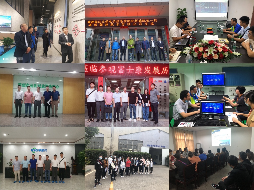 为不断拓宽学生的就业渠道,增加就业机会,加强与用人单位和校友的联系,提高学院在企业中的知名度,在学院党委的领导下,学院组织院领导班子及部分教师开展企业调研工作。2021年7月以来,学院全体领导班子、科任教师以及全体辅导员调动校友资源,发挥自身资源优势,千方百计为毕业生提供就业岗位,主动出击跑市场,先后前往富士康集团总部、深圳市华笙光电子有限公司、宜昌微特技术有限公司、湖北蓝宇航标股份有限公司等多家公司与校友企业进行走访调研,深入了解各企业对电子信息类人才的需求,探讨结合企业需求进行专业教学改革,力争将基本功扎实、动手能力强、创新意识强的社会复合型人才作为培养目标。为进一步优化招聘渠道与模式,学院先后组织70余名2022届毕业生前往航天南湖电子信息技术股份有限公司、湖北菲利华石英玻璃股份有限公司等多家荆州本土企业进行参观,深入了解企业,与企业面对面交流。迄今为止,学院已与近300家企业建立联系,并建立校企合作招聘群,为日后学院毕业生实习就业与公司招聘持续提供暖心服务。