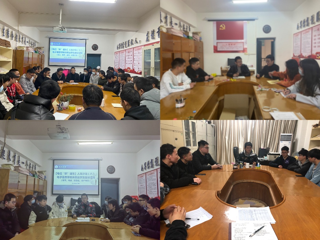 为确保毕业生就业不断档、服务不断线,学院全面部署、精准施策,从思想上引领学生明晰自我职业定位,同时为学生搭建多渠道就业信息平台,为就业提供全方位、一站式服务。2021年9月以来,为深入了解毕业生思想状态,学院每月定期结合学科特点制作“电子信息学院2022届毕业生就业意向调查问卷”,及时有效获取学生的就业意向,给毕业生提供更有针对性的就业服务。此外,为引导毕业生了解当前就业形势和就业政策,帮助学生理性认识就业前景,合理规划职业选择,学院利用多方资源,邀请优秀校友、专业老师、优秀学生代表以及企业高管,通过线上与线下相结合的方式,针对《就业政策讲解》、《考研与调剂学院选择》、《征兵政策宣讲》、《各专业类职业规划讲座》、《国网考试备考攻略》、《未就业学生专场答疑解惑》及《就业指导沙龙》等多个专题,为2022届毕业生总计开展“企业面对面”育才报告会2场、电信“职”通车——人生沙龙8场等系列就业指导活动,进一步创新指导模式,促进多元就业,为毕业生贴心服务。