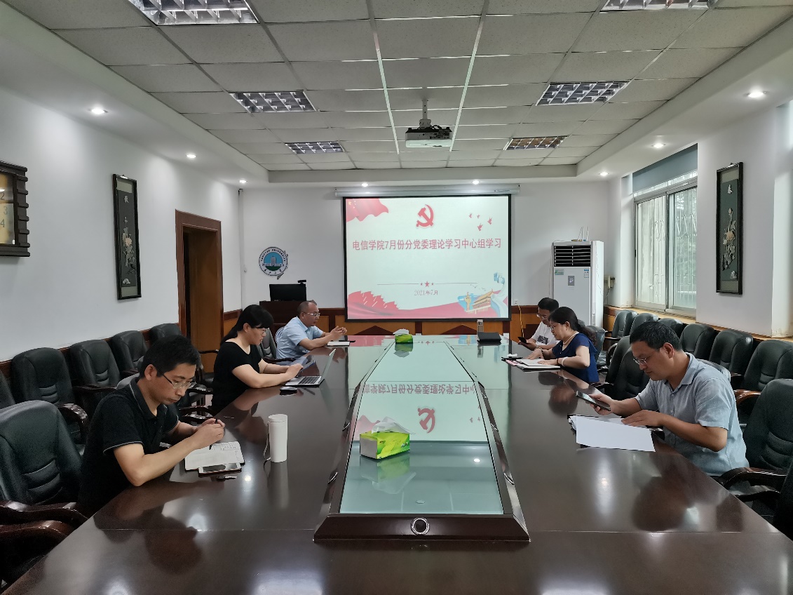 7月8日10:30,电信学院分党委理论学习中心组在10教205会议室组织集中学习,分党委书记刘逸主持学习,中心组全体成员参加学习活动。