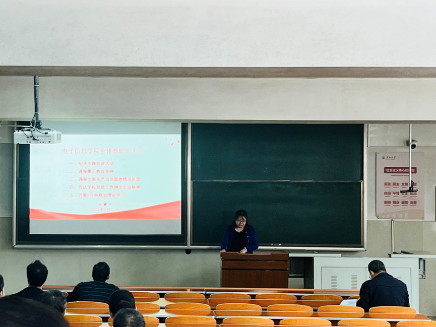 9月22日下午,我院在主教108召开全院教职工大会并开展本月教职工政治理论学习。会议由分党委书记刘逸主持。