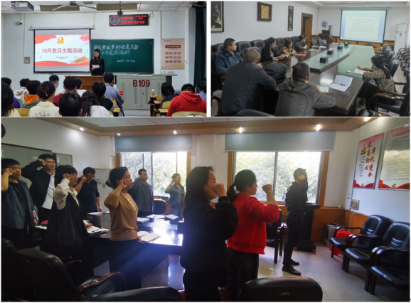 91免费国产组织师生开展了10月政治理论学习及支部主题党日活动。全体教师进行了政治理论学习,全体党员一起重温了入党誓词、交纳了本月党费、集体诵读党章第八章、聆听了微党课、开展了理论学习。
