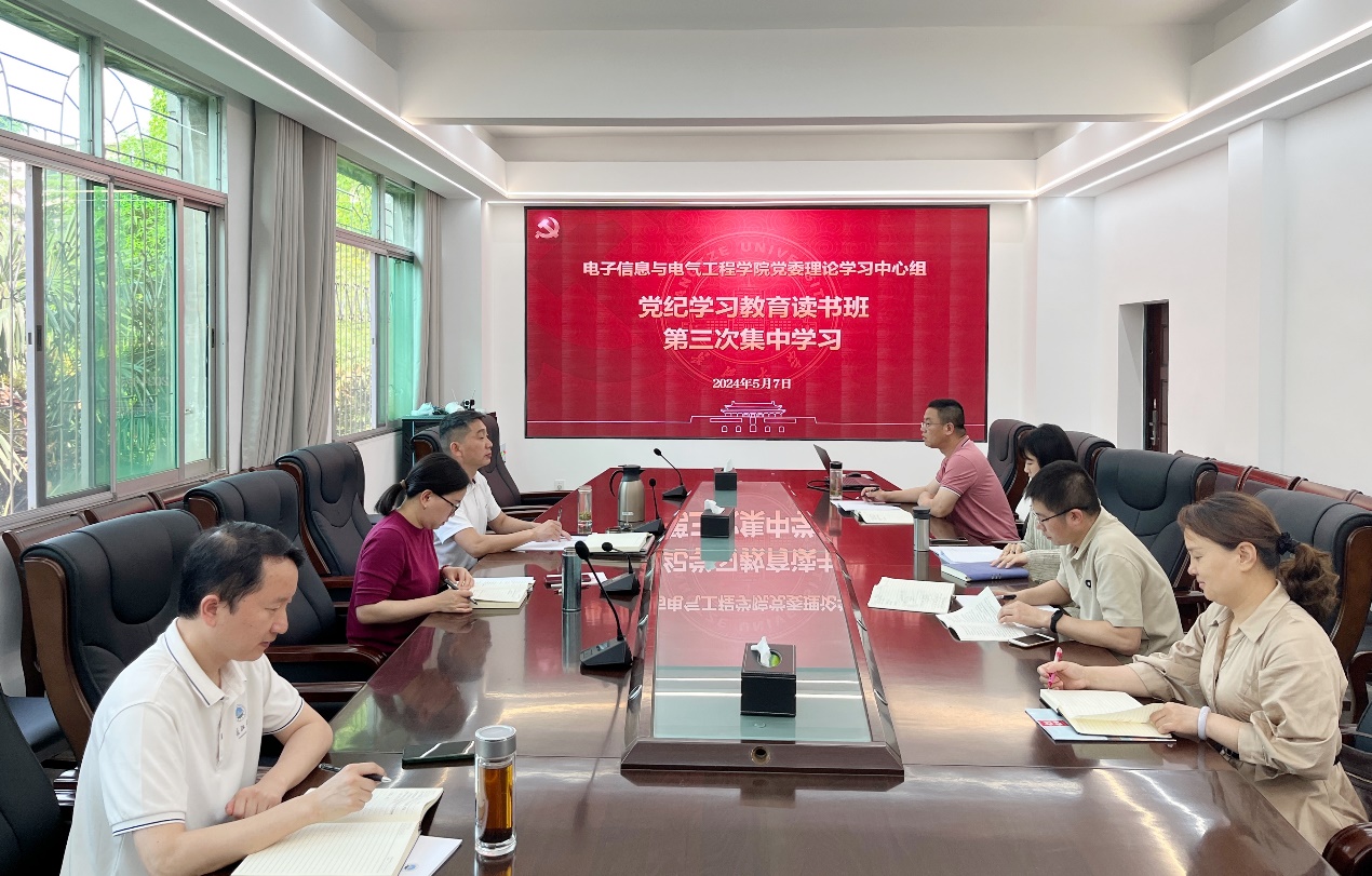5月7日下午,学院党委理论学习中心组在10教205会议室召开党纪学习教育读书班第三次集体学习会。