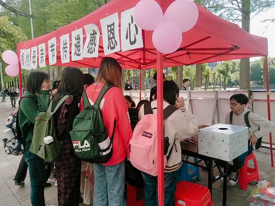 (通讯员 何思艺)为了响应长江大学“万人友善接力温暖家书”活动,在母亲节来临之际,电子信息于5月8日至10日在西校区六号与七号教学楼门前摆点举办了“相约母亲节,传递感恩心”活动。