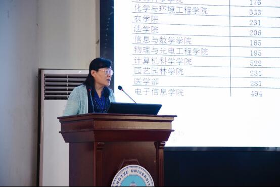 首先,孙院长分享了长江大学2017级本科生研究生录取率的图表,通过直观的数据突出我院考研形势严峻和同学们考研中存在的问题,凸显考研动员大会的必要性。紧接着,她抛出一系列问题——“报考研究生吗?为什么不考研?你了解目标院校的录取情况吗?”让同学深入思考和慎重对待考研计划。孙院长对考研的同学提出,第一要了解目标学校的招生计划,尤其是跨院招生情况。她推荐同学们从学校官网了解考研政策,并推荐《小草保研考研》微信公众号助力他们对考研信息的掌握。随后,她建议大家要坚定考研决心,互相报团监督完成考试,祝愿大家都能以扎实的功底、优异的成绩上岸。