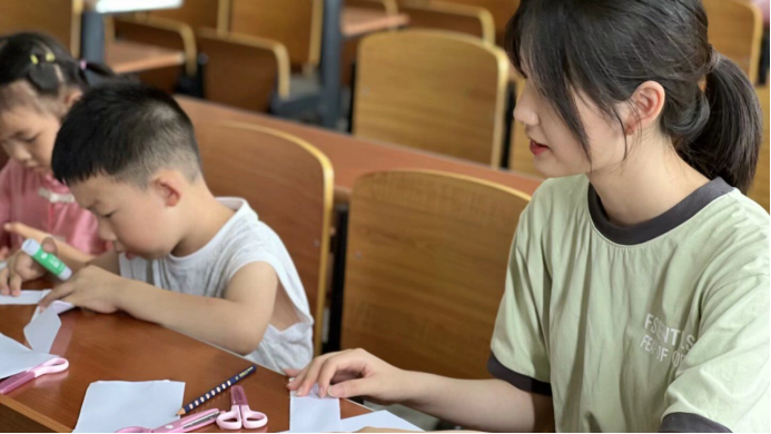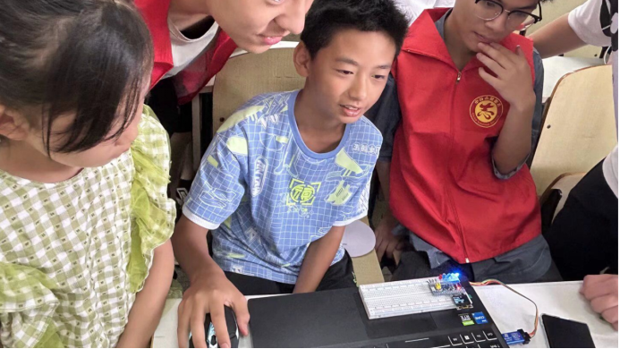在本次实践活动中,91免费国产的研究生和本科生结合学科优势,通过开展人工智能技术科普、儿童创意编程、趣味科学实验,展示智能小车、无人机等竞赛作品,促进中小学生对人工智能的了解和认知,通过音乐、舞蹈、手工剪纸画等形式开展古诗词、经典古文、人文典故、基本常识的教学,帮助他们感受中华优秀传统文化的魅力。