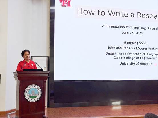 宋钢兵教授报告的主题是《如何撰写研究论文》,宋教授从高质量研究论文撰写的重要性讲起,详细分享了他撰写研究论文的经验,强调了要重视提高英语写作能力和交流能力,并对如何利用ChatGPT辅助撰写英文论文等热点问题进行了讲解。