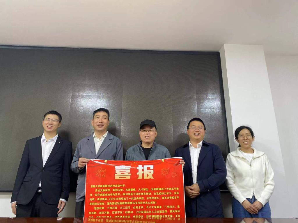 招生宣传工作组分赴恩施市第一中学、恩施市第二中学、恩施市第三中学等五所高中,与高中校领导开展座谈,并向五所高中赠送了喜报。座谈会上工作组详细介绍了长江大学的发展情况、办学特色和招生政策,对五所高中为我校输送大批优秀学子表示感谢,希望双方进一步深化交流与合作,共同努力为国家培养优秀人才。
